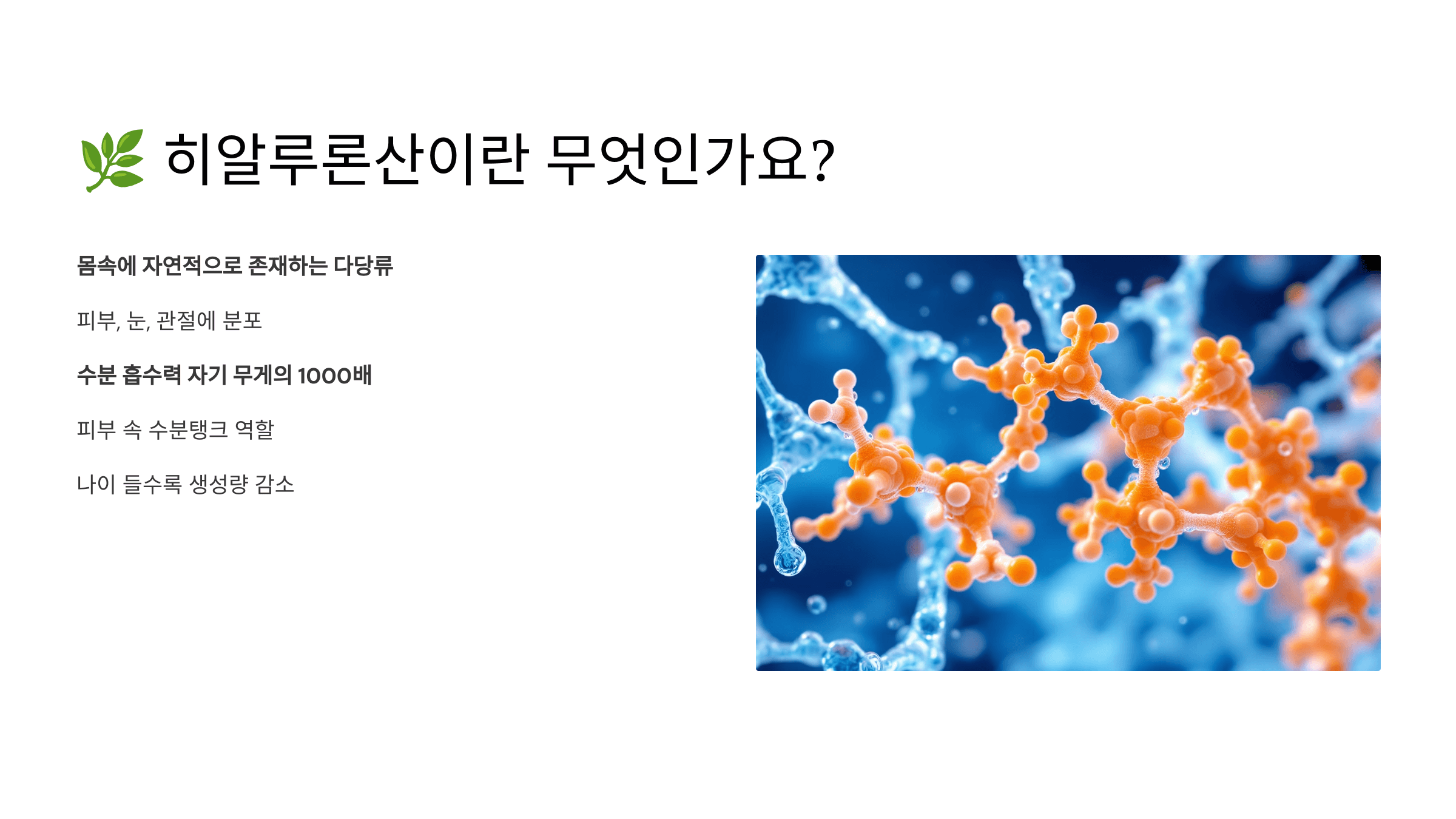 히알루론산은 단순한 유행이 아니라, 피부와 몸속 건강을 위한 핵심 성분이라는 걸 요즘 정말 실감하고 있어요.